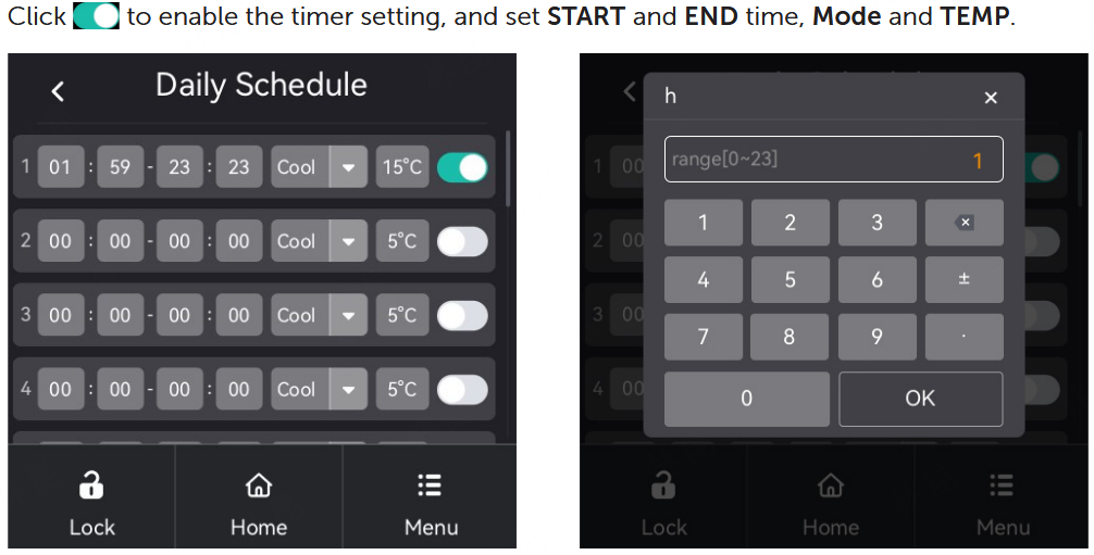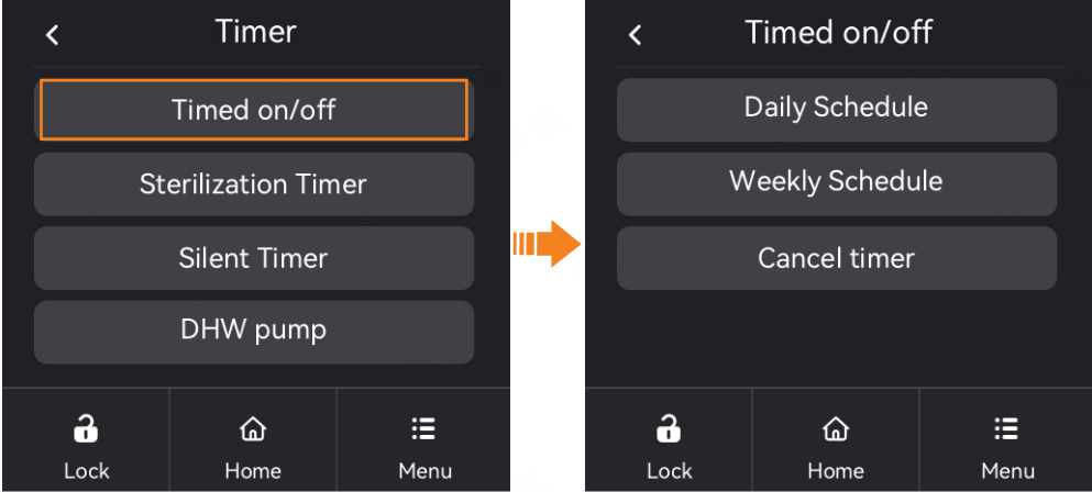 Setting path: Set Menu > Timer > Timed ON/OFF > Daily Schedule