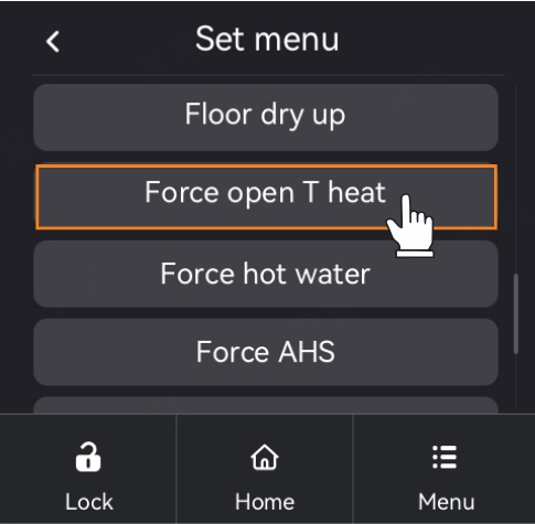 heating mode, if there is a demand for hot water, the Force open T heat function can be
