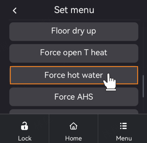 Setting path: Set Menu > Force hot water