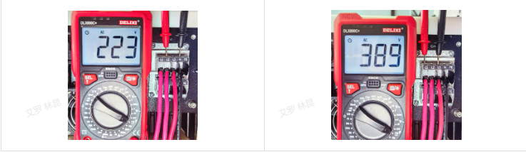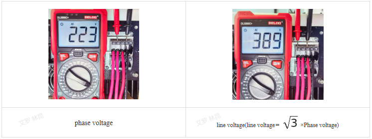 Step 1: Use a multimeter to measure the phase voltage and line voltage at the AC port.